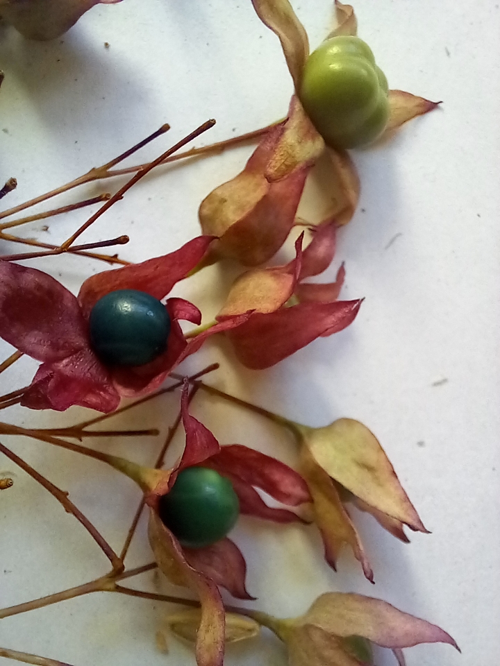 Originaire d’Asie du sud-est, il est découvert par Thunberg vers 1780 et la culture en Europe date de 1880. Ce petit arbre au port largement étalé, en été, se couvre de fleurs au calice rose pourpré d’où sortent une corolle en tube s’élargissant en 5 pétales blancs, 4 longues étamines, et un style, à l’automne apparaissent de façon esthétique des drupes non comestibles d’un bleu porcelaine, entourées de 5 sépales. Les feuilles ont des nervures marquées, au couleur bronze, au démarrage. Plante aux nombreuses propriétés médicinales. Ayant subi le gel, l’arbuste repart de souche. Famille des Lamiacées. Il y a des cultivars. Présence au jardin botanique du Parc de la Tête d’Or ç Lyon, et des parcs dans les ville …Bourg-en-Bresse….